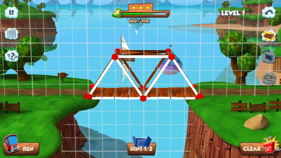 4、渐进式难度曲线:从3米小溪到50米峡谷的百余个标准关卡,逐步引入风力影响、轮船通行等复杂变量,系统培养玩家结构力学直觉与问题解决能力。