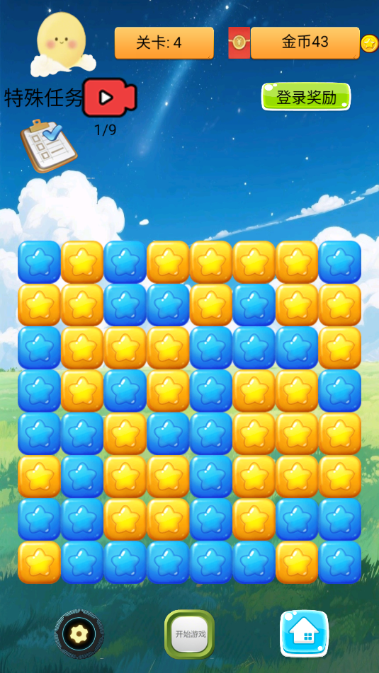 3、每通过一关卡,就会呈现不同的星星颜色,玩法基本一致。