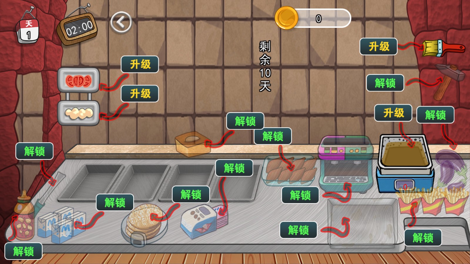 2、食材新鲜度系统真实模拟餐饮业的库存管理,各类肉品和蔬菜会随时间推移降低品质,需要合理规划采购周期避免浪费,同时保持菜品的绝佳口感。