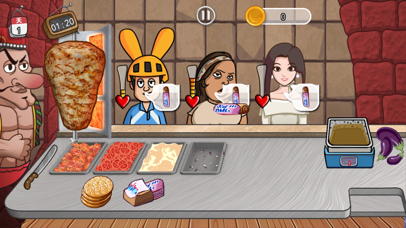 2、独创的烤肉火候控制系统,需要精准把握翻面时机与温度调节,通过触屏滑动实现真实的烹饪操作感。烤焦或未熟的肉品将直接影响顾客评价与收益获得。