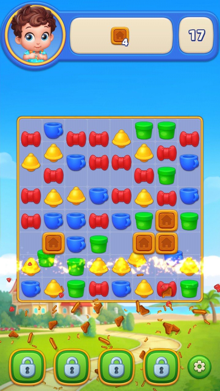 3、特殊连击机制会在消除五个以上物品时生成炸弹或彩虹道具,带来连锁反应和区域清除效果,大幅提升闯关效率。