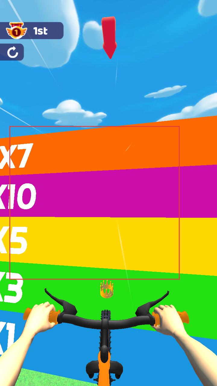 3、遇到彩色区域时,驾驶自行车驶入,可获得倍数加成,提升得分,为取得好成绩助力。