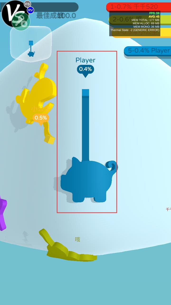 2、操控蓝色小猪造型方块,在空间中移动染色,建立自己的领地,与其他玩家竞争。