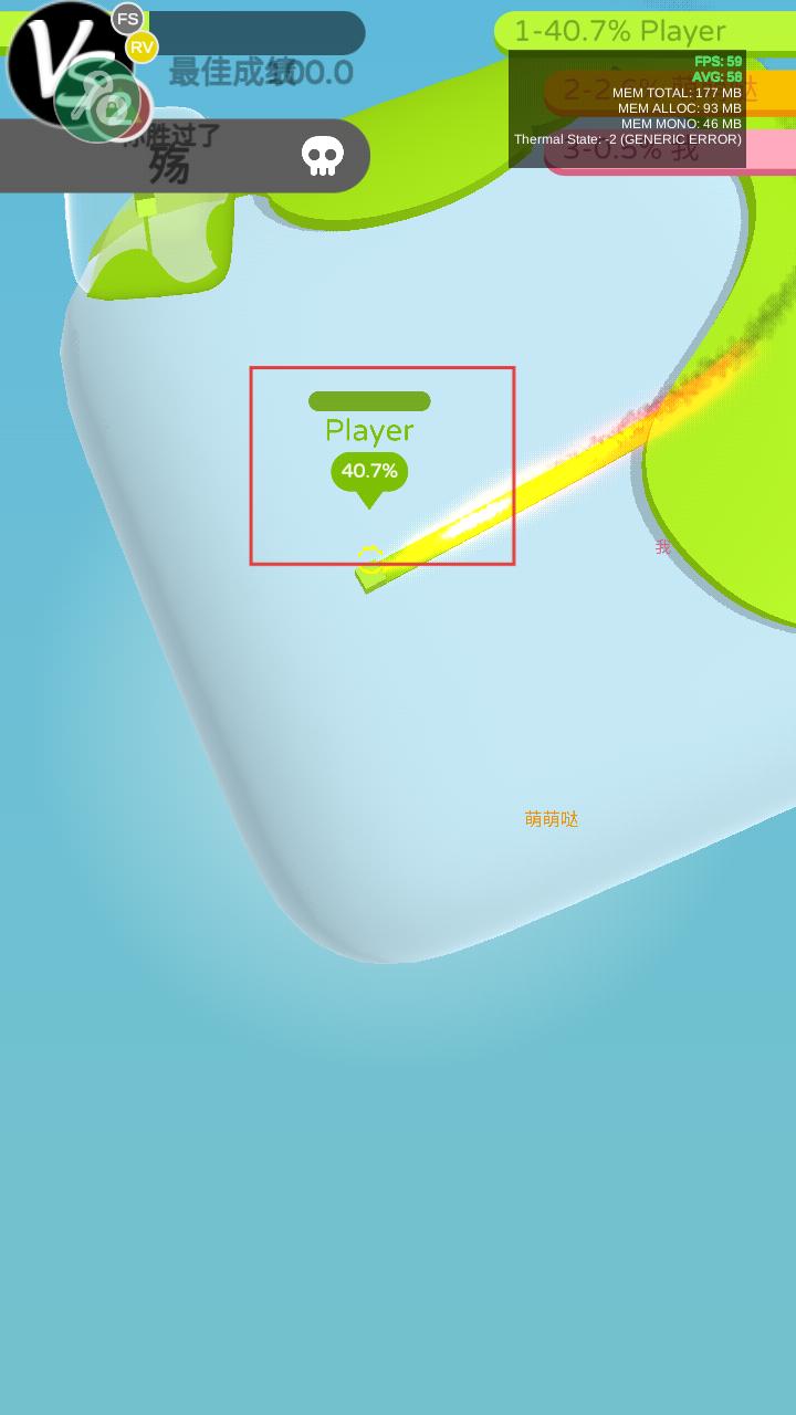3、通过移动方块染色扩大领地占比,如Player可达到40,在竞技中争取优势。