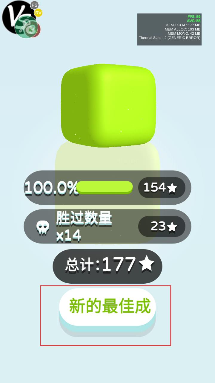 4、游戏结束后会显示成绩,若创造新纪录,可点击红框中的按钮,记录自己的成就。