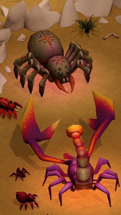 1、八支独特进化分支覆盖从跳蛛到捕鸟蛛等经典物种,每支包含25个阶段性变异节点,甲壳厚度与螯肢形态都会随进化产生可见变化。