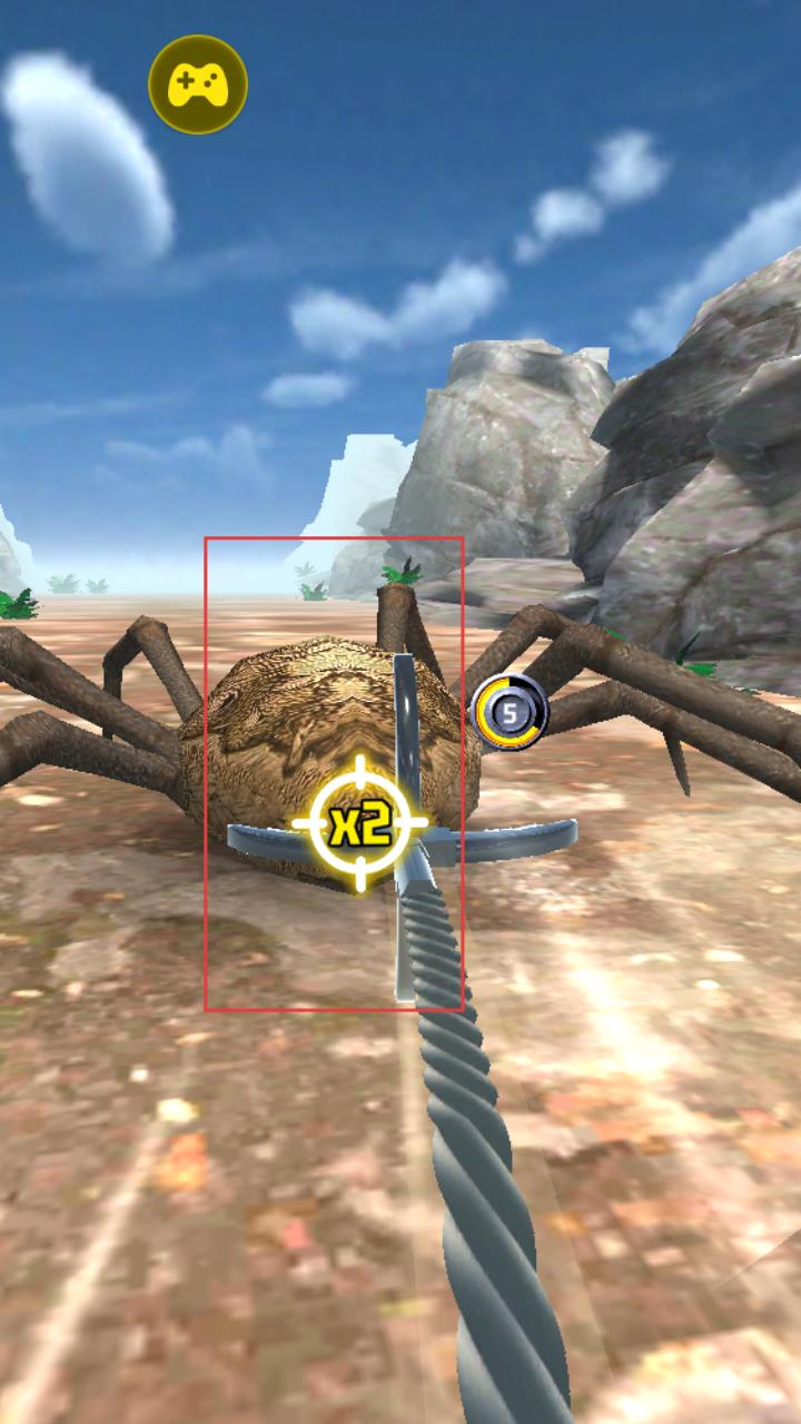 2、使用钩子攻击蜘蛛,命中后触发x2伤害效果,持续对蜘蛛发起攻击,感受战斗的策略性操作。