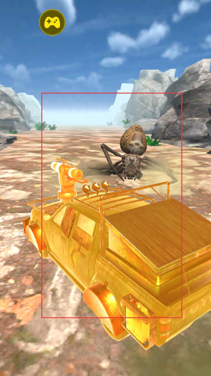 4、战斗结束后出现金色载具,驾驶它在山脉场景中继续探索,迎接下一波怪物挑战,解锁更多游戏内容。