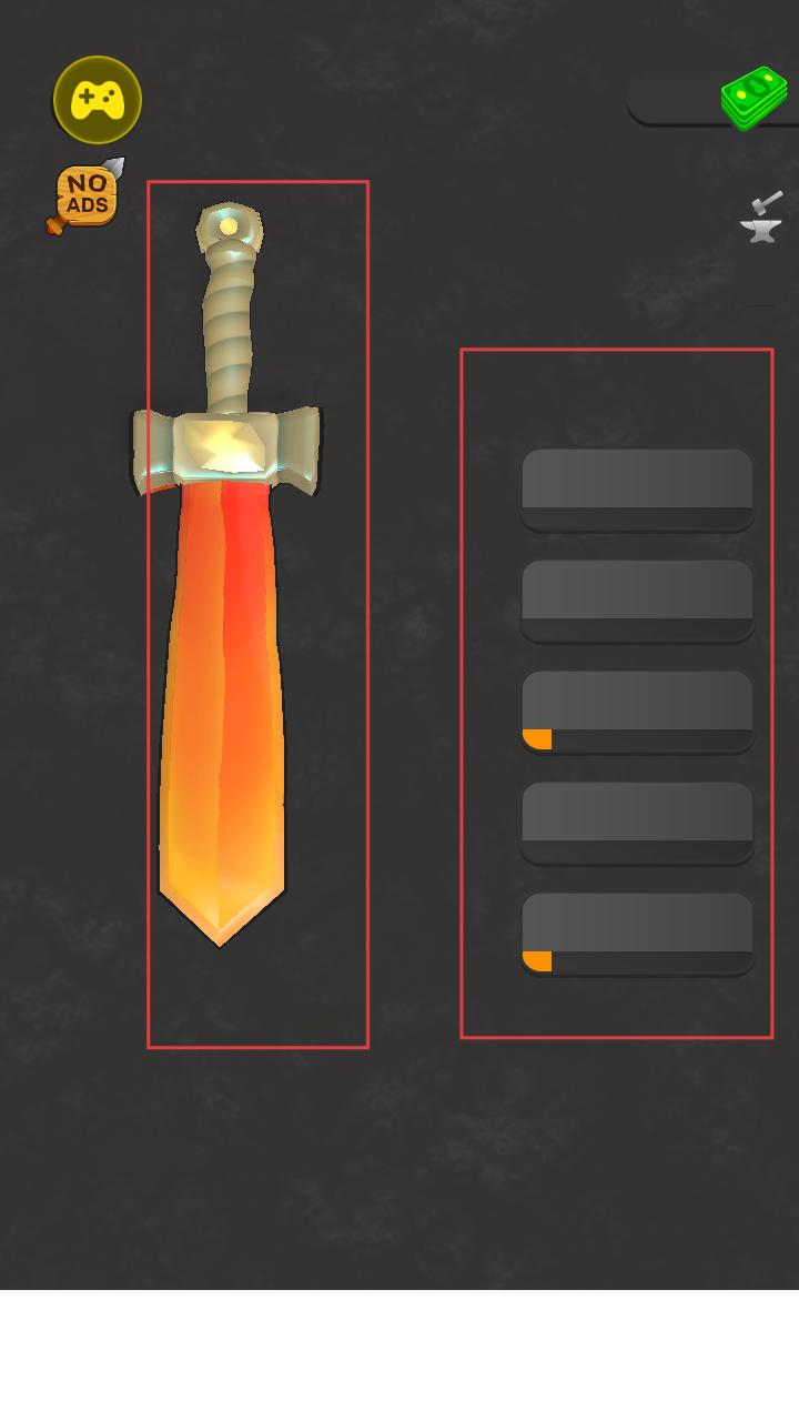 4、全新加入的武器展示厅功能,可以用无限金币购买各种展示架和背景装饰来陈列你的杰作。