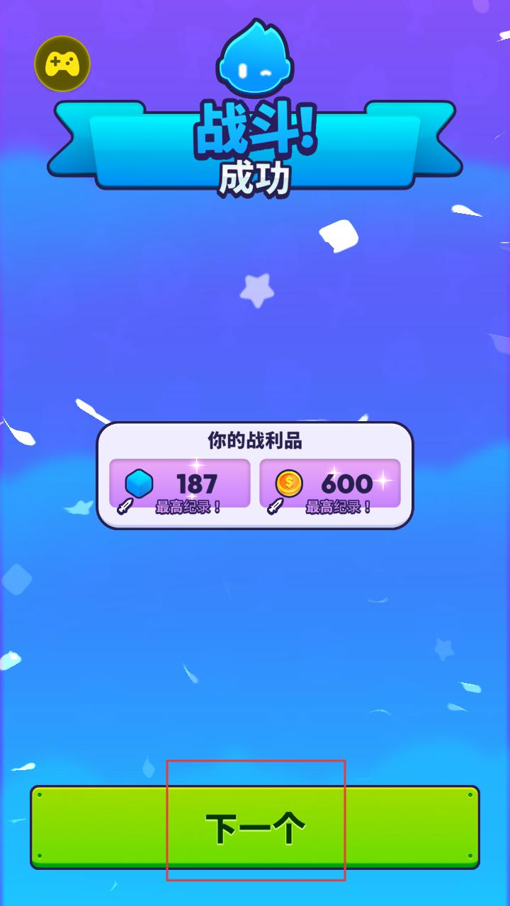 4、战斗成功后,领取战利品,点击下一个,进入下一场战斗,继续指挥队伍,挑战更多关卡,享受对战快感。