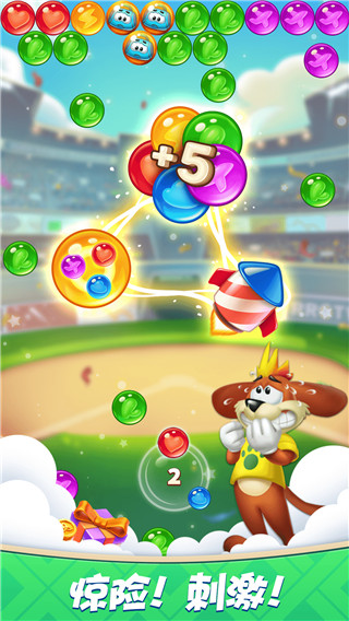 2、瞄准目标位置发射泡泡,尝试匹配三个及以上相同颜色泡泡完成消除。