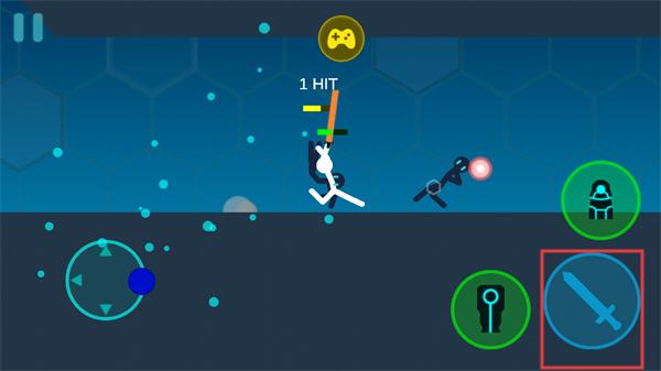 2、操控火柴人在场景中移动,借助初始武器剑,在不同场景中探索,为参与热血对战做好准备,开启格斗之旅。