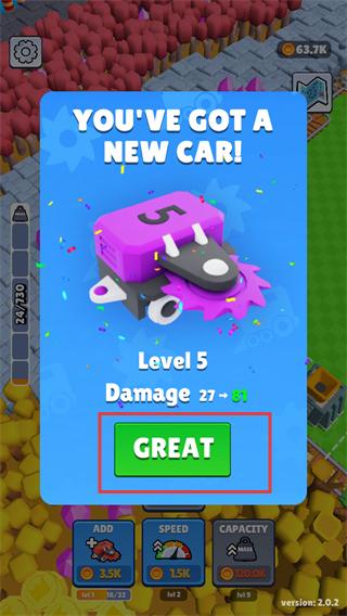 1、获得Level5新火车,点击GREAT领取,其伤害大幅提升,助力砍伐树木、清理土地,高效收集资源,推动铁路帝国建造进程。