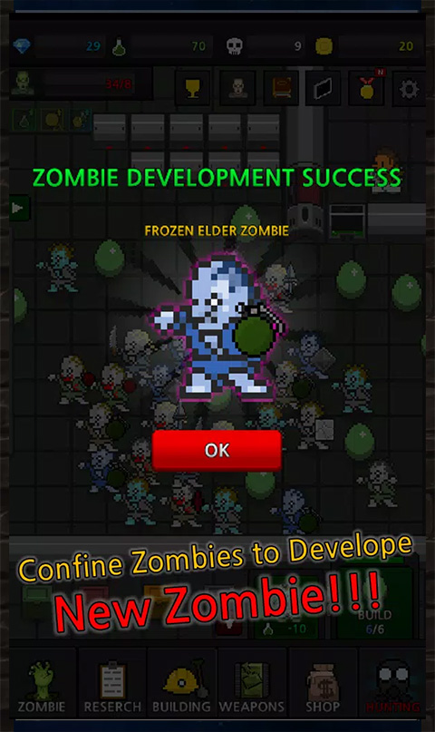 1、研究所系统可升级,缩短合成冷却时间,解锁基因强化功能,全面提升僵尸军团整体战力。