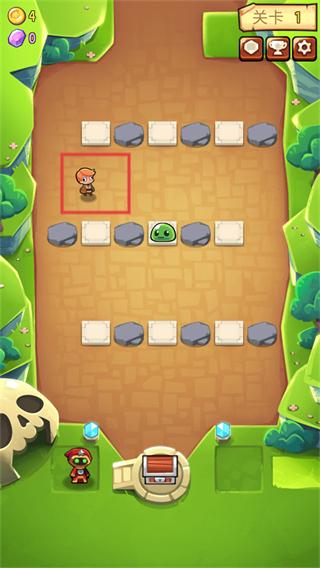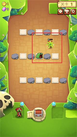 1、关卡开启后,入侵者进入布局区域,玩家需借助已部署的怪物,在石块随机分布的场景中,开启守护宝箱的防御之战。