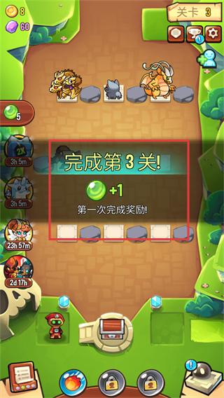 4、成功完成关卡后,会出现完成关卡的提示,同时能获得奖励,比如完成第3关可得到第一次完成奖励,进而继续挑战后续关卡。