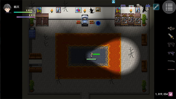 3、点击右上方使用道具,有治疗、技能树和手电筒开关。