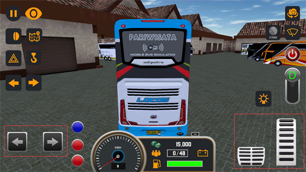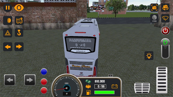 3、在驾驶界面,通过左右方向键控制转向,油门刹车键调节车速,驾驶巴士在城市街道行驶,遵守交通规则,完成客运任务。