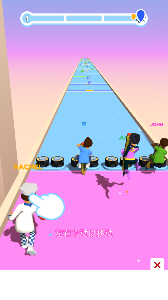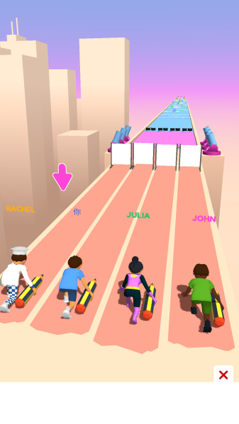3、3D卡通涂鸦画风+动感音效,色彩斑斓的赛道与角色动作音效相得益彰,沉浸感十足。
