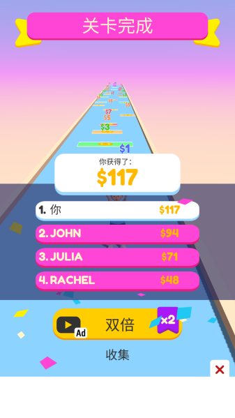 3、奔跑中优先规划路线收集金币,用于解锁新角色、服装与绘画辅助道具。