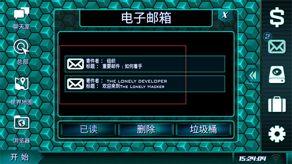 3、点击电子邮箱中的邮件,查看内容获取任务信息,推进黑客行动的准备流程。