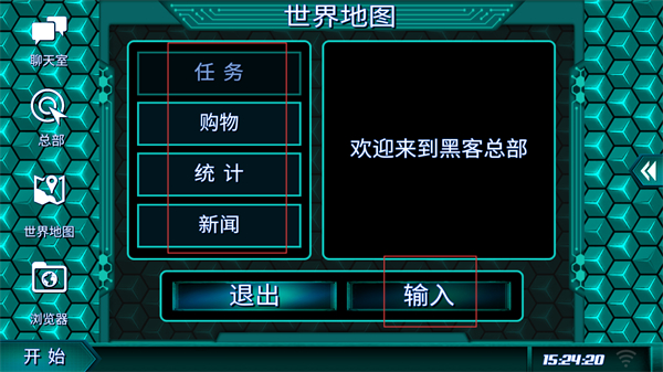 4、在世界地图界面点击输入按钮,准备输入指令,开启对应的黑客任务操作。