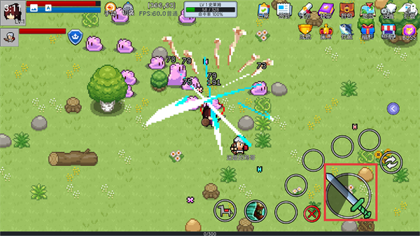 4、点击屏幕下方的武器按钮,释放攻击技能,对周围的怪物造成伤害推进战斗进程。