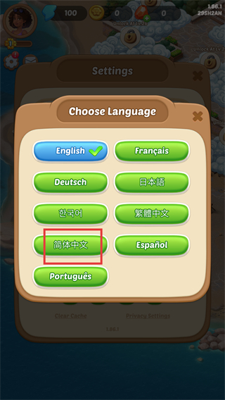 3、在语言选择界面点击简体中文选项,将游戏的显示语言切换为中文,方便后续操作与游玩。