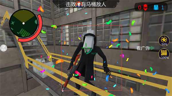 4、瞄准并击败最终的马桶敌人,完成当前关卡的目标,同时可获得对应的通关反馈和奖励。
