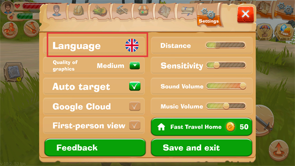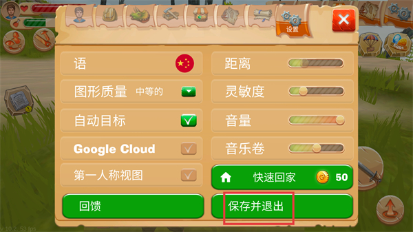 3、将语言切换为中文后,点击保存并退出按钮,应用设置并返回游戏主界面,界面文字变为中文。