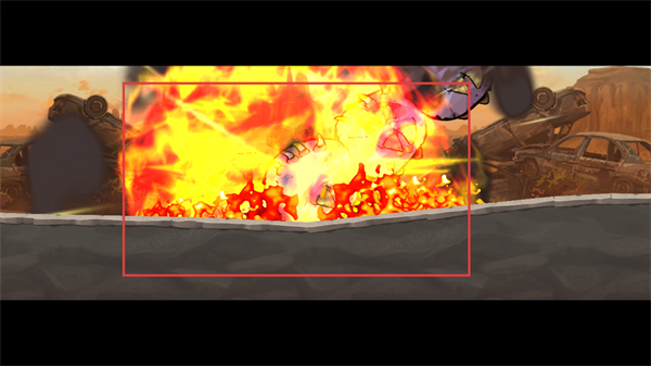 4、战车行驶至火焰区域,与火焰产生互动,触发场景效果,继续推进战车完成当前关卡的挑战。