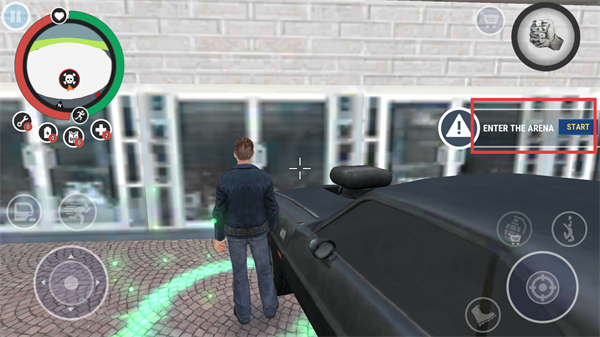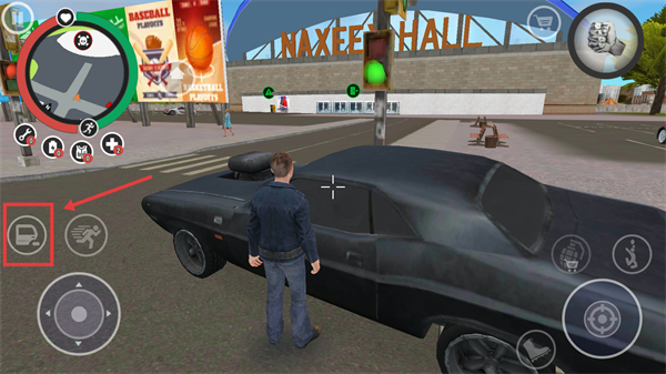 2、点击左侧的车辆图标,触发与黑色汽车的互动,进入车辆驾驶的准备阶段,解锁车辆的驾驶权限。