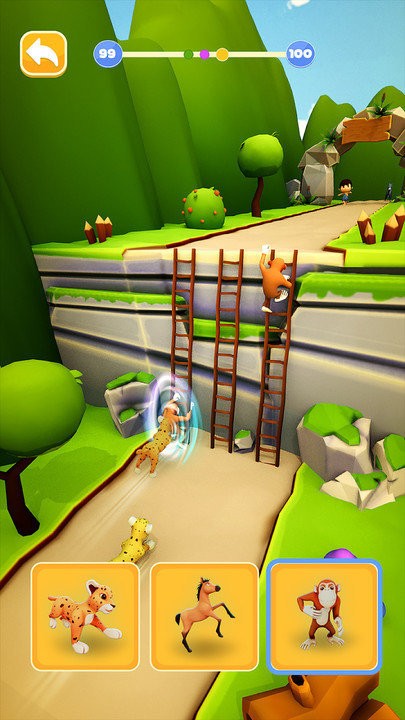 《动物变形赛》是一款Android平台休闲竞技跑酷游戏,语言含中文。核心玩法为竞赛中点击切换动物形态,猎豹擅长陆地疾驰、鲨鱼适配水域穿行、大象可摧毁障碍,依据地形与障碍实时选择适配动物。赛道涵盖山川、海洋等多元地形,设有丰富关卡与竞技模式,支持单人挑战与双人对战。赛道中收集加速鞋、隐身衣等道具提升优势,进度条实时显示自身与对手位置,3D动画搭配趣味音效,带来兼具策略与操作感的竞技跑酷体验。