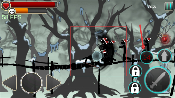 2、持续攻击场景中的敌方火柴人,观察上方血条状态,保持自身存活的同时提升击杀数量。