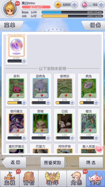 3、萌宠养成体系:宠物可独立探险,拥有专属技能,图鉴收集激活额外属性。