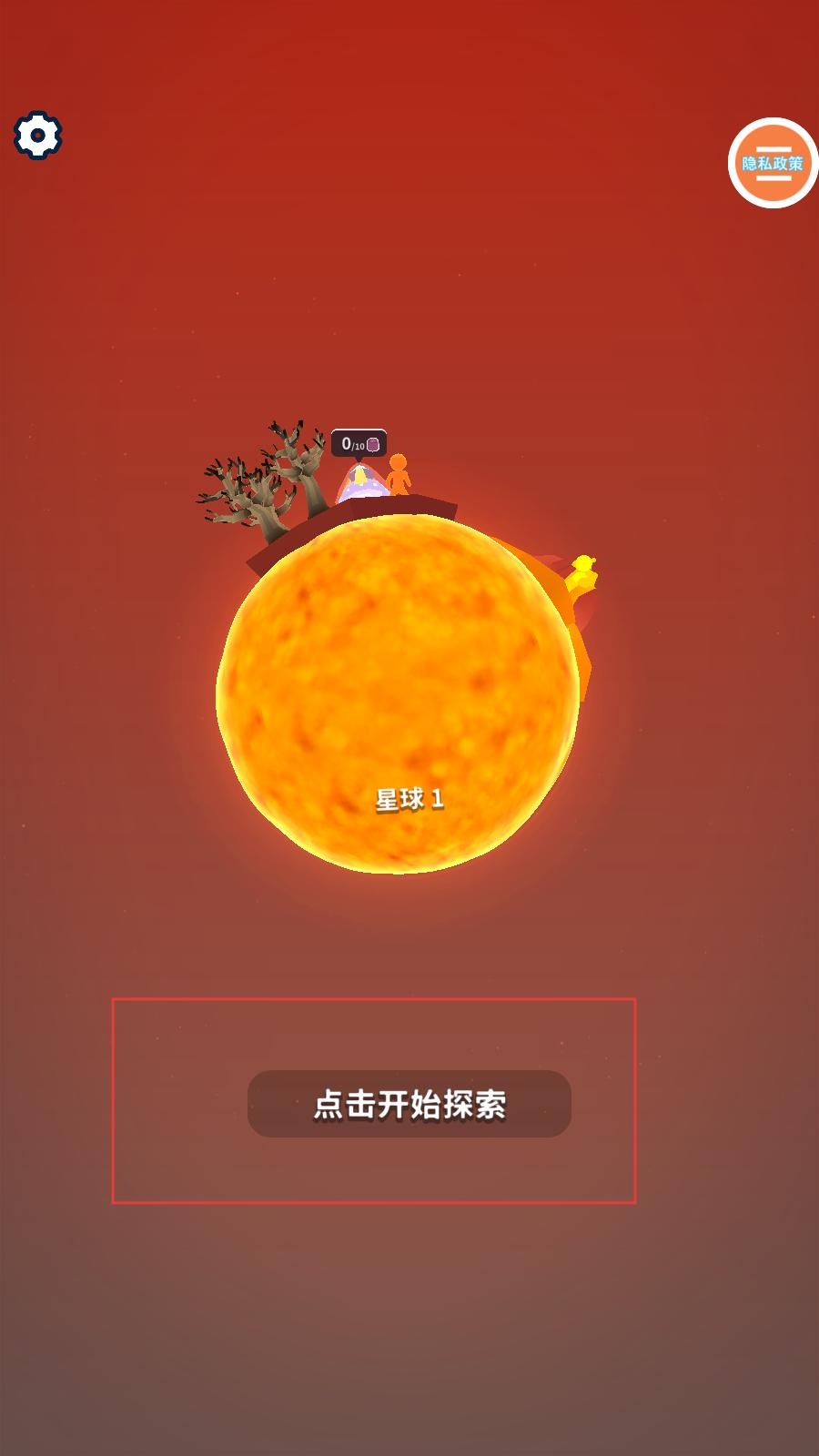 1、进入游戏,点击开始探索,开启在星球上的冒险,准备进行资源收集与火箭修复等操作。