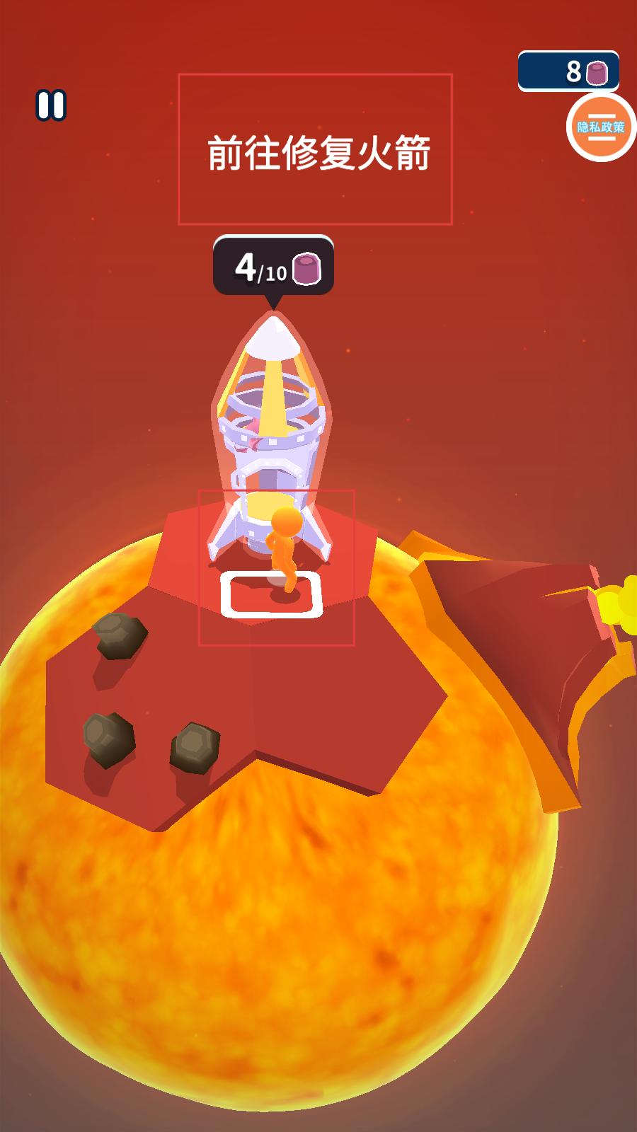 4、收集到一定资源后,前往火箭处,进行火箭修复工作,逐步推进冒险进程,朝着离开星球的目标努力。