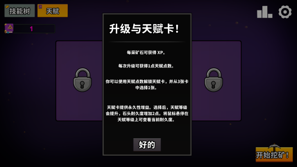 3、策略深度充足:天赋卡牌需权衡风险与收益,技能树与镐具搭配多样,避免休闲游戏的无脑刷感。