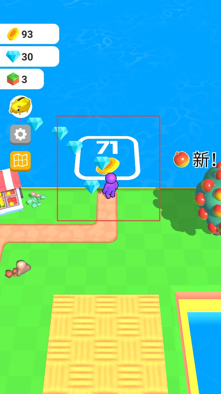 1、在农场中移动角色,收集带钻石和金币区域,积累资源用于农场建设,同时界面显示资源数量,方便随时查看经营状况。