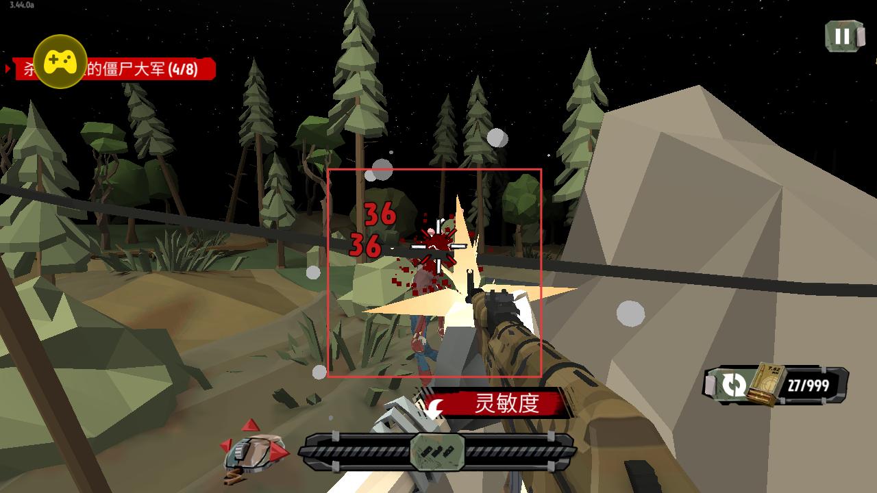 3、在战斗场景中以第一人称视角使用武器射击僵尸,屏幕会显示伤害数值,需消灭指定数量僵尸推进任务。