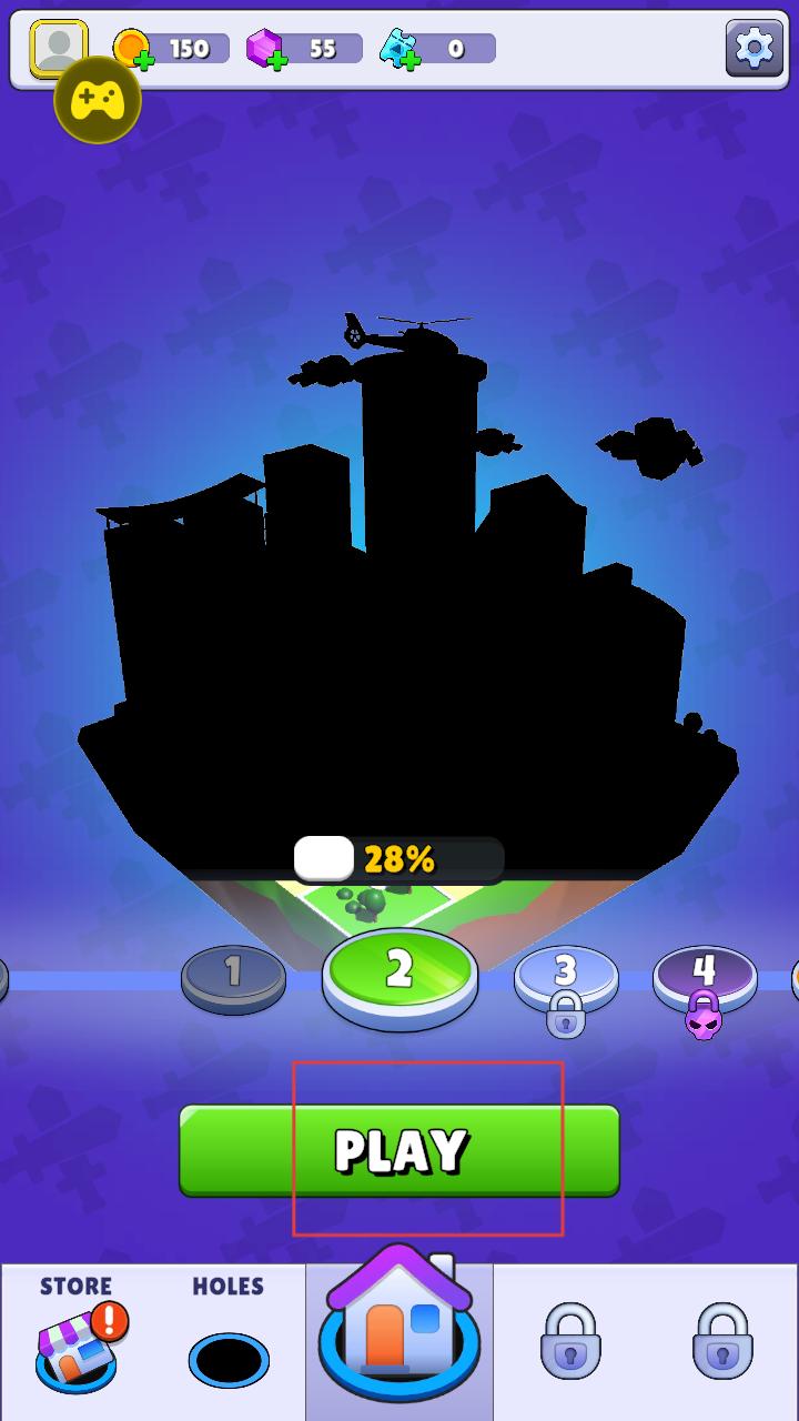 2、在主界面点击PLAY按钮,进入游戏关卡,开启黑洞吞噬挑战,在城市场景中操控黑洞,正式开启吞噬冒险,体验魔性的吞噬过程。