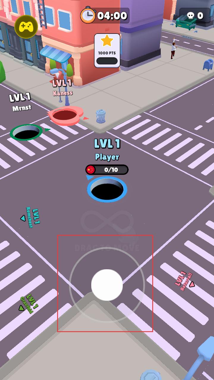 3、游戏中拖动黑洞移动,吞噬城市里的建筑、行人等物体,通过吞噬提升黑洞等级、扩大吞噬范围,感受丝滑的破坏与吞噬快感,不断壮大黑洞。