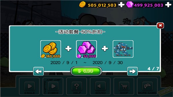 2、切换武器页,能看到药瓶、各类锁着的武器及技能,药瓶可在被僵尸感染时治愈,点击START按钮即可开启战斗,开启格斗征程。