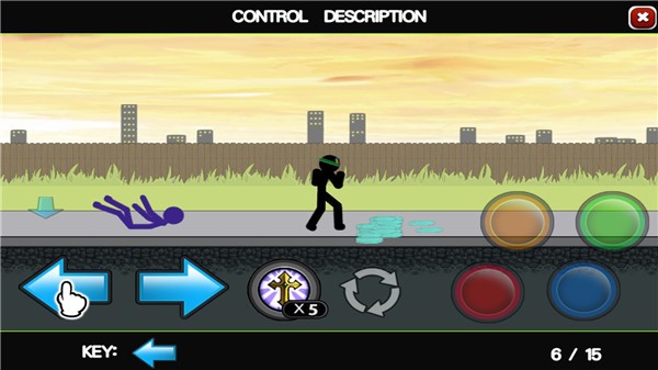 3、战斗时用左右方向键控制火柴人移动,在多层平台间走位,上方有HP、金币等信息,合理走位可躲避敌人攻击,为攻击创造机会。