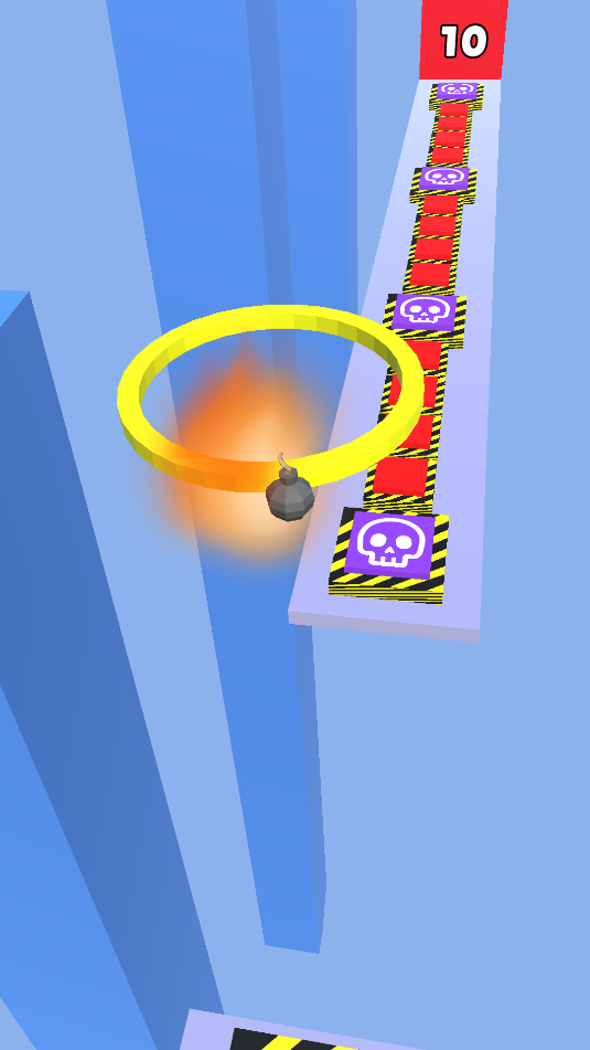 2、角色开始跳跃进入雷区拿到炸弹,按住屏幕,角色可以增加跳跃能力和弹力。