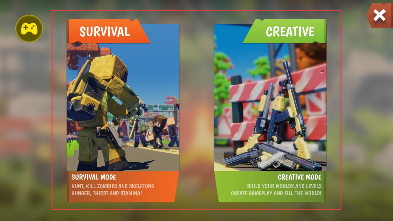 1、进入游戏可选择生存模式或创意模式,生存模式需狩猎击杀僵尸和骷髅,还得关注饥饿、口渴和耐力状况。