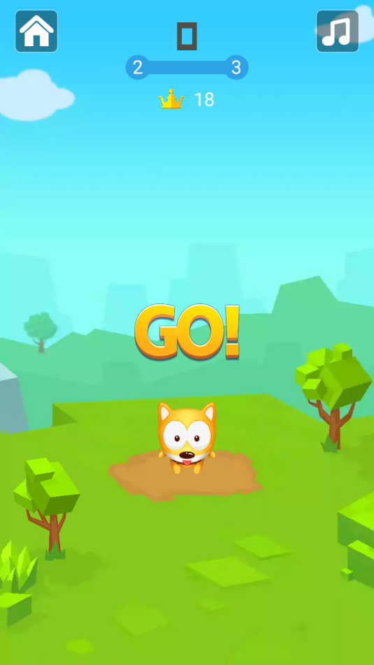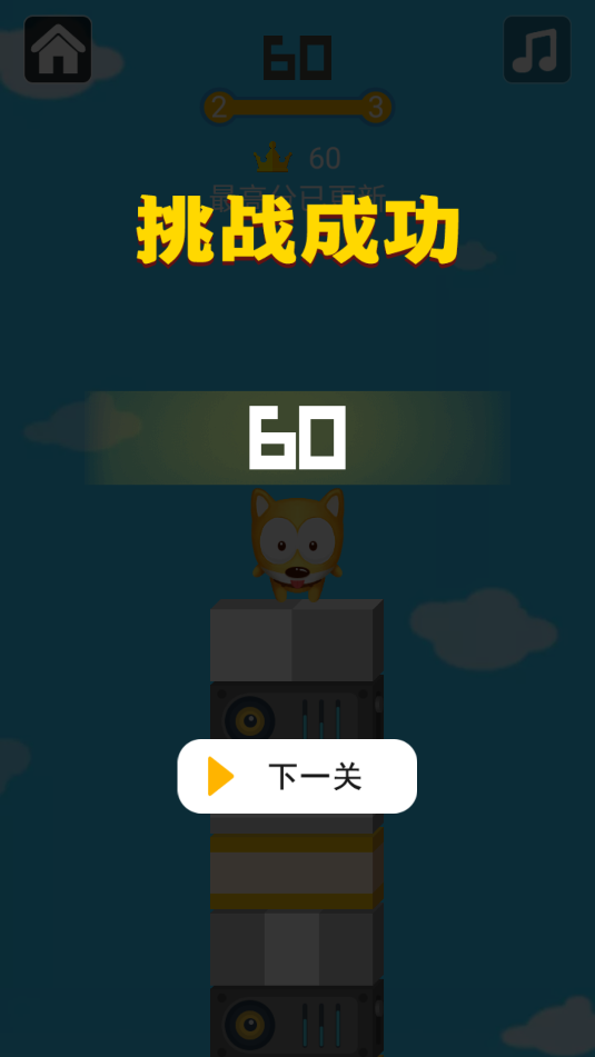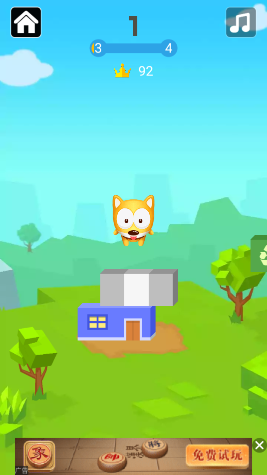 2、游戏中,左右两边的方块会向中间撞过来,需点击屏幕小狗会向上跳跃,并在下落时踩中方块,使自己垫得更高。