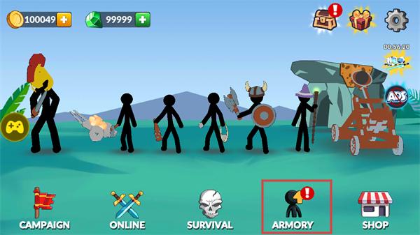 1、进入游戏主界面,可选择CAMPAIGN、ONLINE等模式,界面展示不同时代兵种,上方有大量金币、钻石资源,点击对应按钮开启游戏进程。