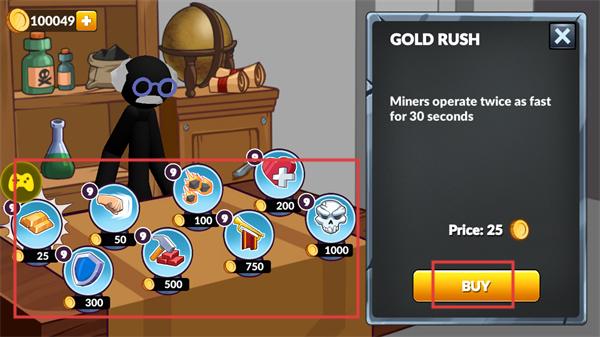 3、在科技界面,可解锁金币增益、兵种强化等科技,如GOLD RUSH能让矿工提速,花费金币购买增益,增强军团实力。
