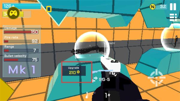 2、在武器界面花费210金币升级SG5,提升伤害、射速等属性,增强枪械战斗能力,应对更难的战斗场景。